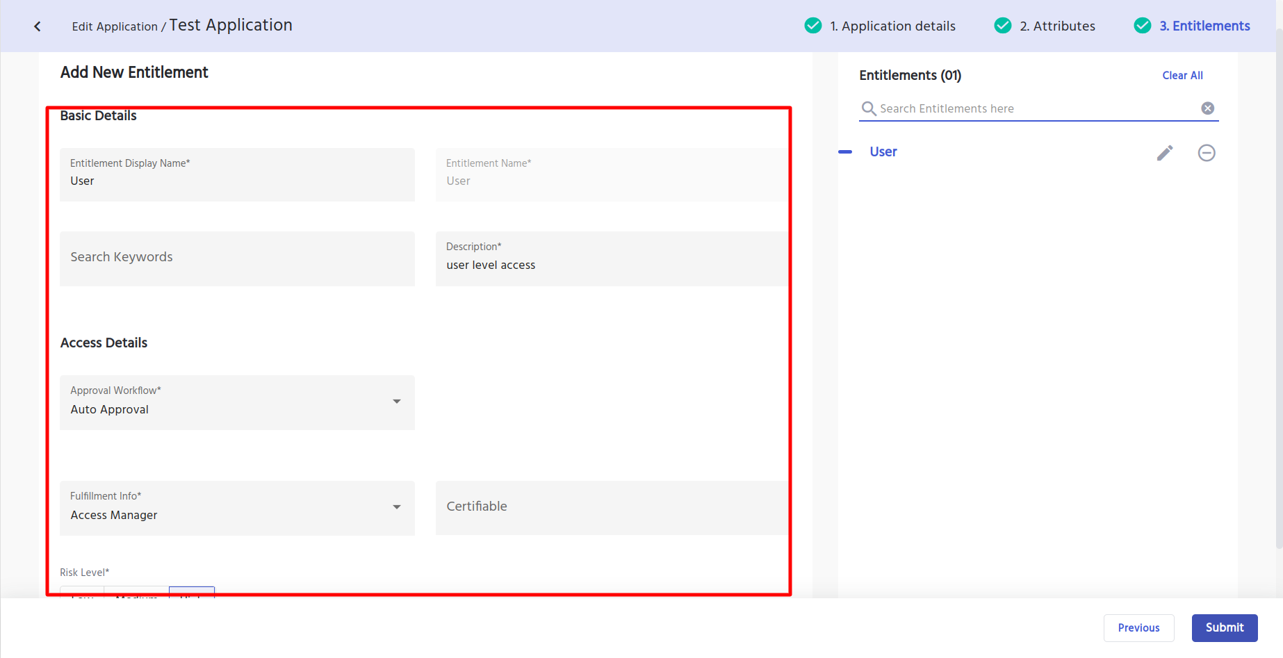 Now the change in the application entitlement would go through the workflow life cycle of the application and will create a task or request for the same. Once the workflow is completed, the changes to the application entitlement would take affect.