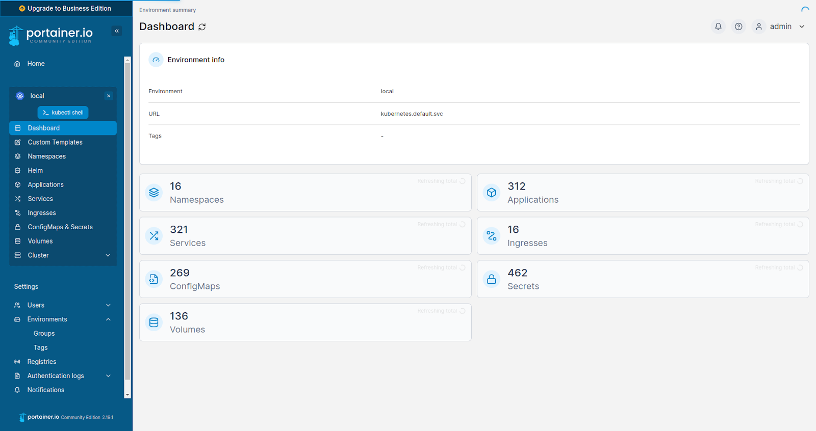 When you log in to portainer, under dashboard will display the following screen: