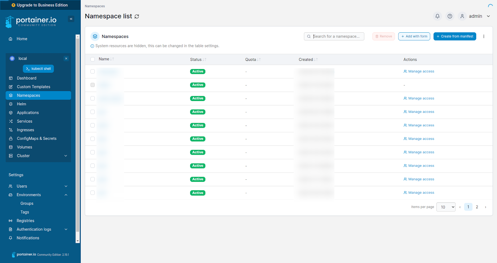 Click on the namespace and here you will find the list of all namespaces here.