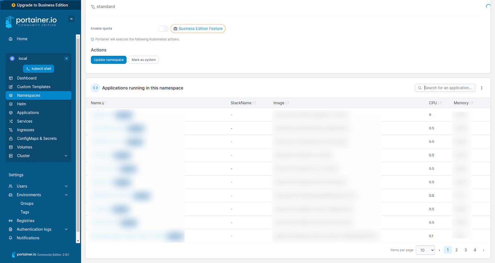 Applications Running in Namespace