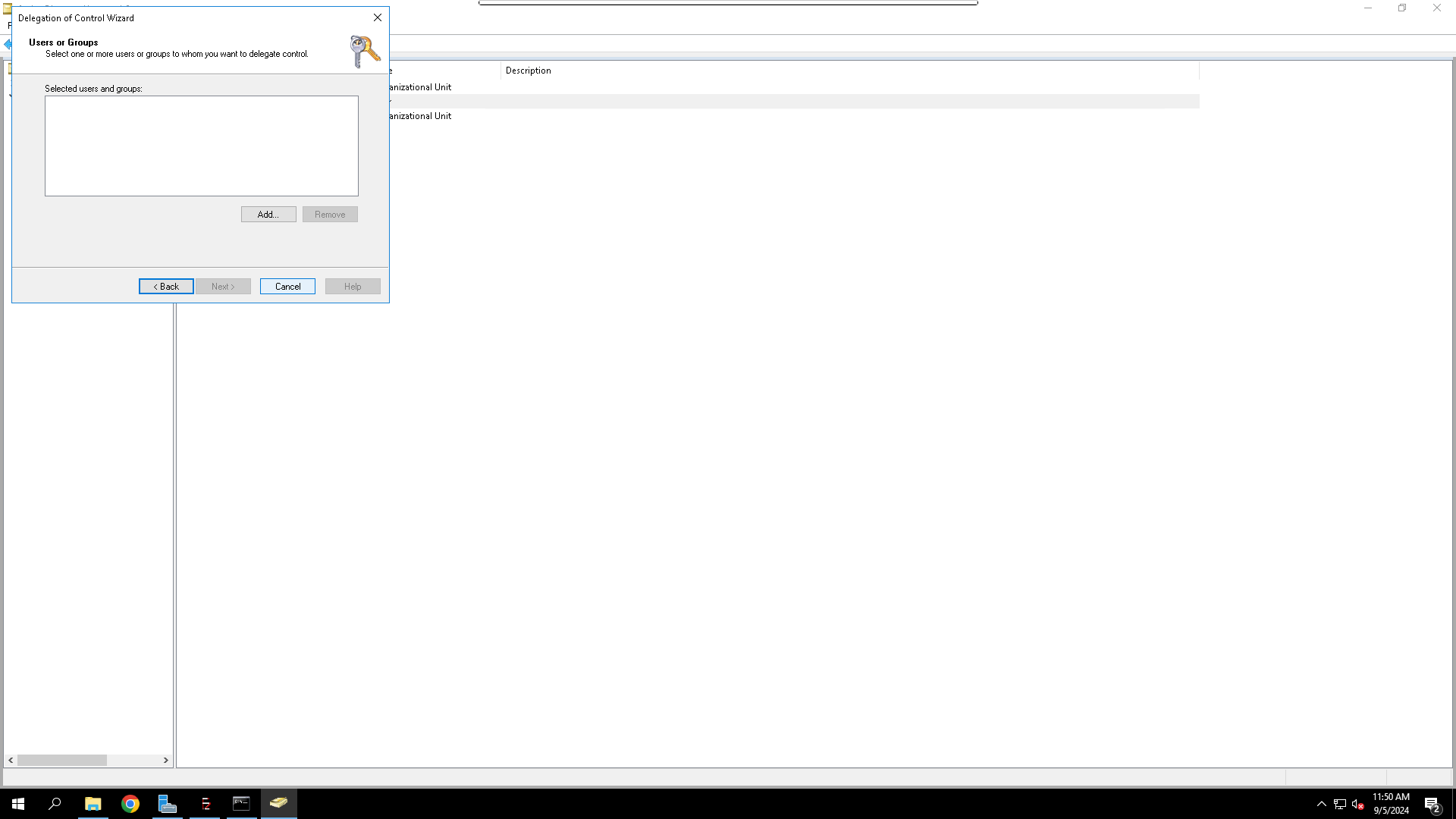 - This will launch the Delegation of Control Wizard, which allows you to specify permissions.