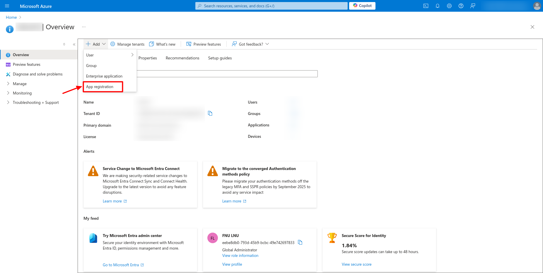 An application (Entra ID terminology) will need to be registered within Entra ID instance for granting our connector permission to call the Microsoft Graph API.