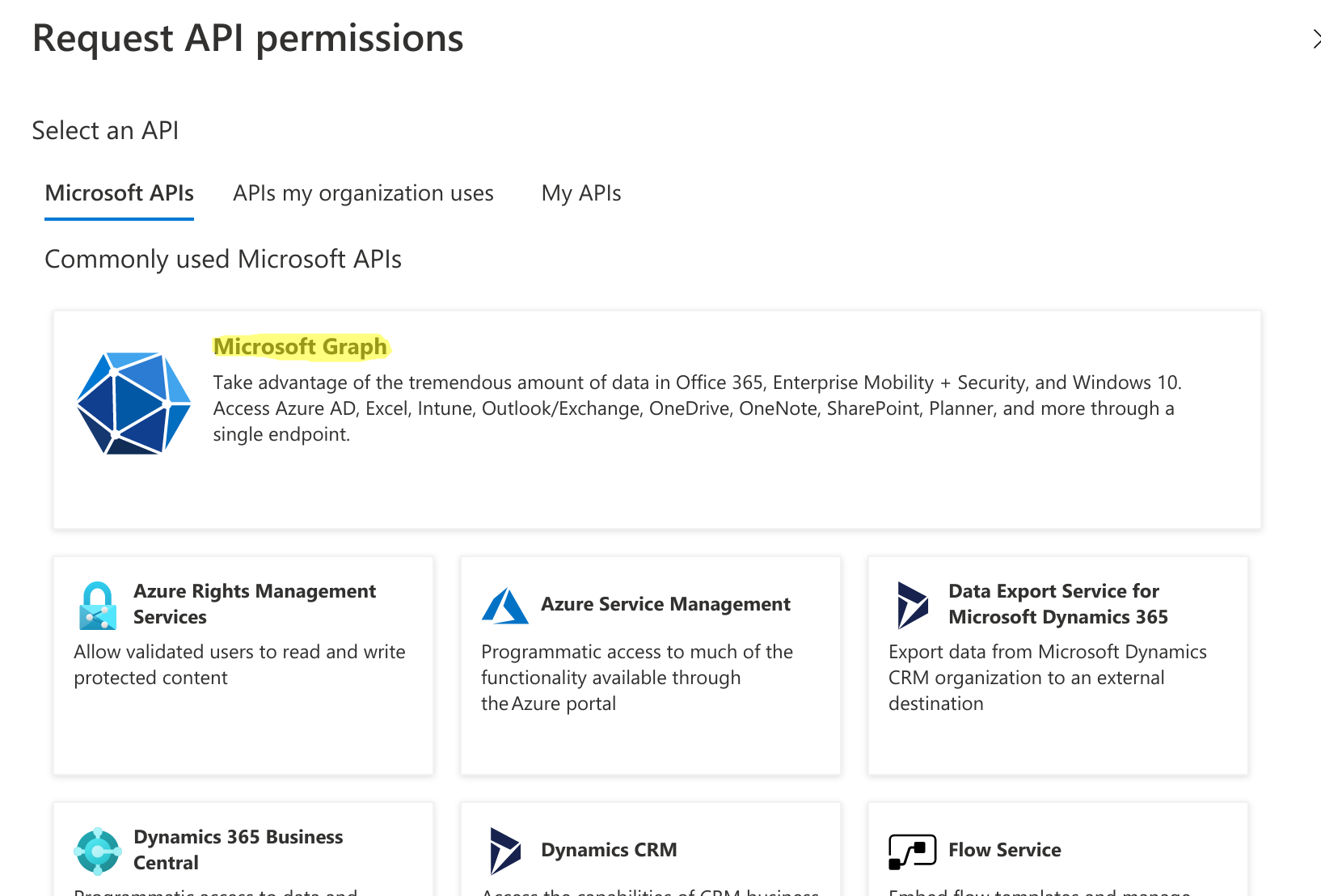 1. Go to the registered application and click on Manage --> API Permissions and then on Add a permission.