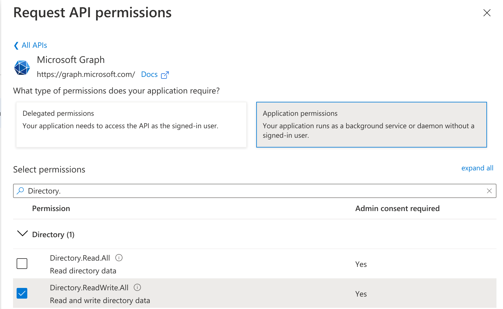 • Read and Write Directory Data - Directory.ReadWrite.All