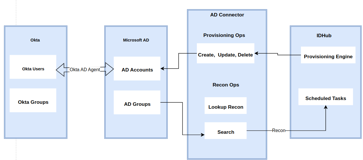 IDHub's Okta connector establishes a secure connection with your organization's Active Directory. This connection acts as a conduit to synchronize directory group information with your Okta instance. This robust integration empowers you to: