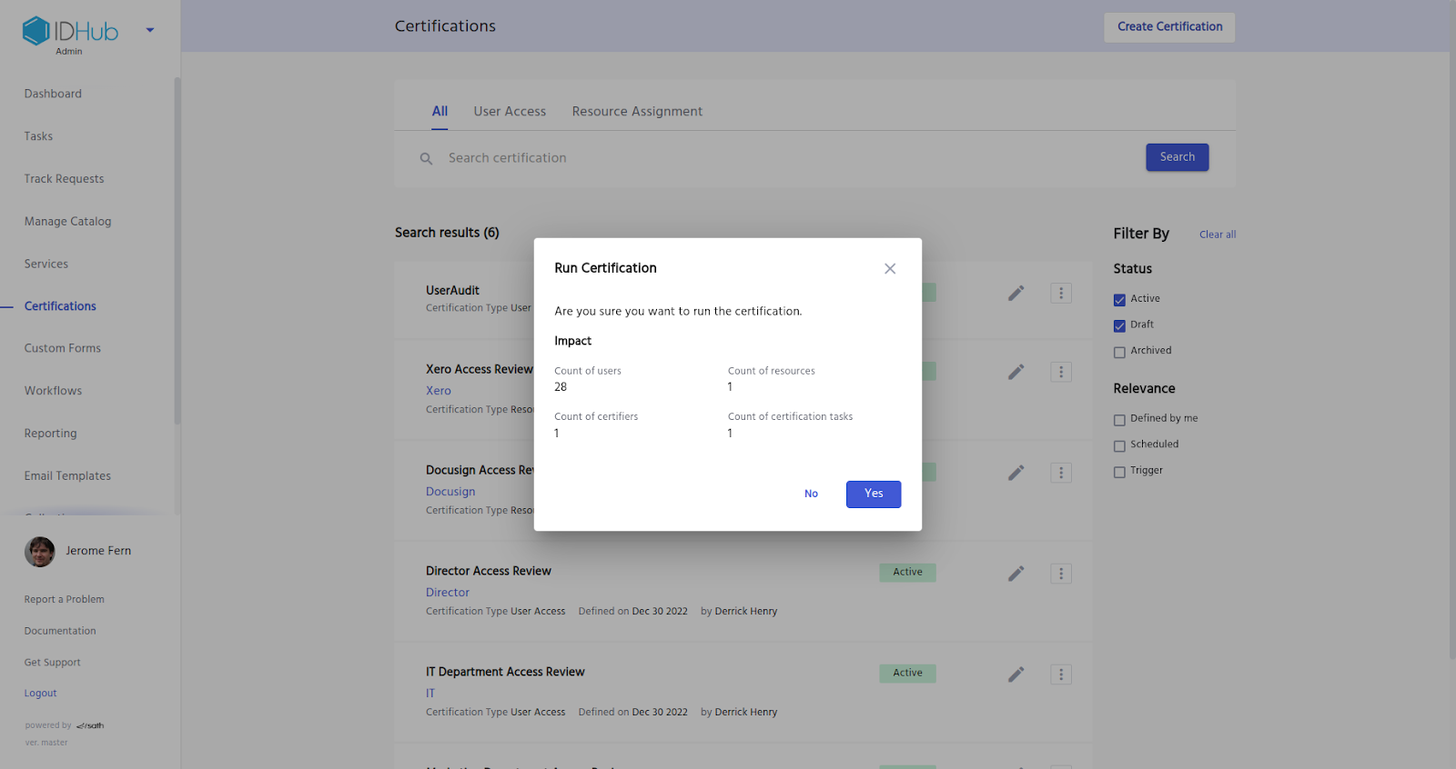Once you finish certifying all the catalog items in the certification task. IDHub would display a dialog to complete the certificate.