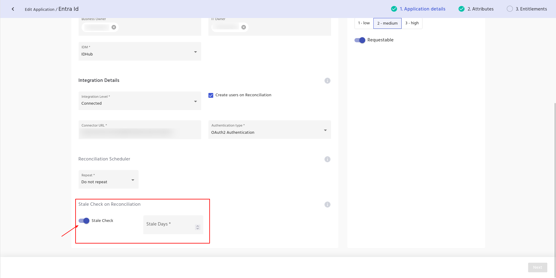 - If the Stale Check toggle button is Off, then in that case, non-existent accounts or entitlements in the target system will not be removed or revoked upon reconciliation of the application in IDHub.