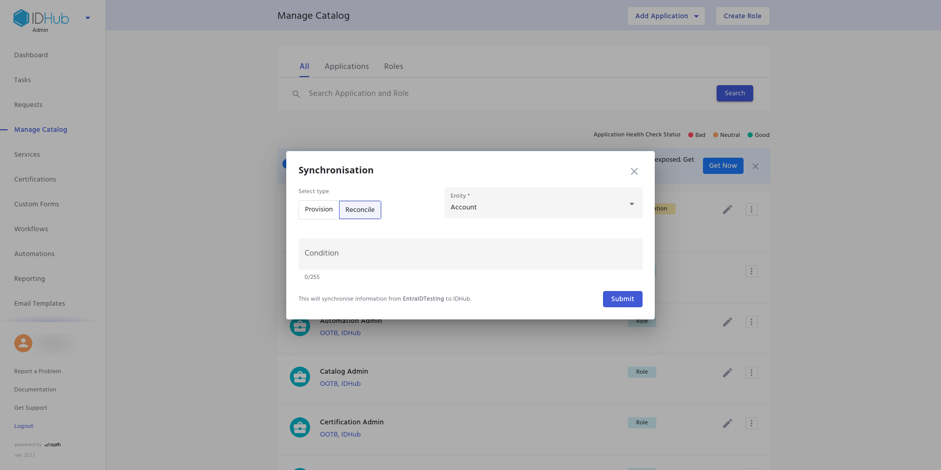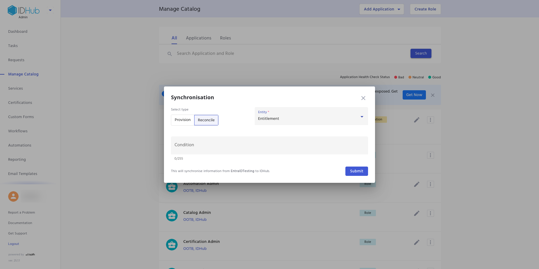 - Go to Manage Catalog (under IDHub admin app).