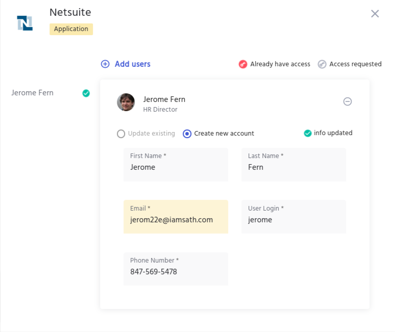 The last step for the provisioning is for the Fulfiller to approve the fulfilment task and to create the account in the target system. IDHub would generate a Fulfillment task and the fulfiller has to approve the task and then create the account in the target system.