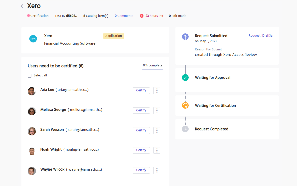 In case of a resource type certification, each certification task details page would display the list of users to be certified along with the resource name. (See Screenshot below)