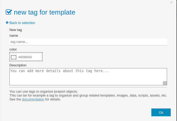 In the new tag template you can enter the name of the tag, color and any description for the tag.