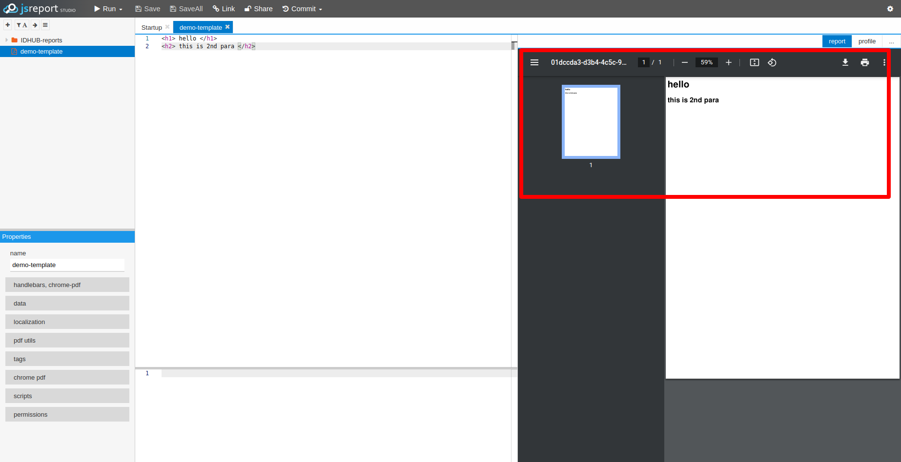 This will display the report at the right hand side, as is shown in the screenshot below: