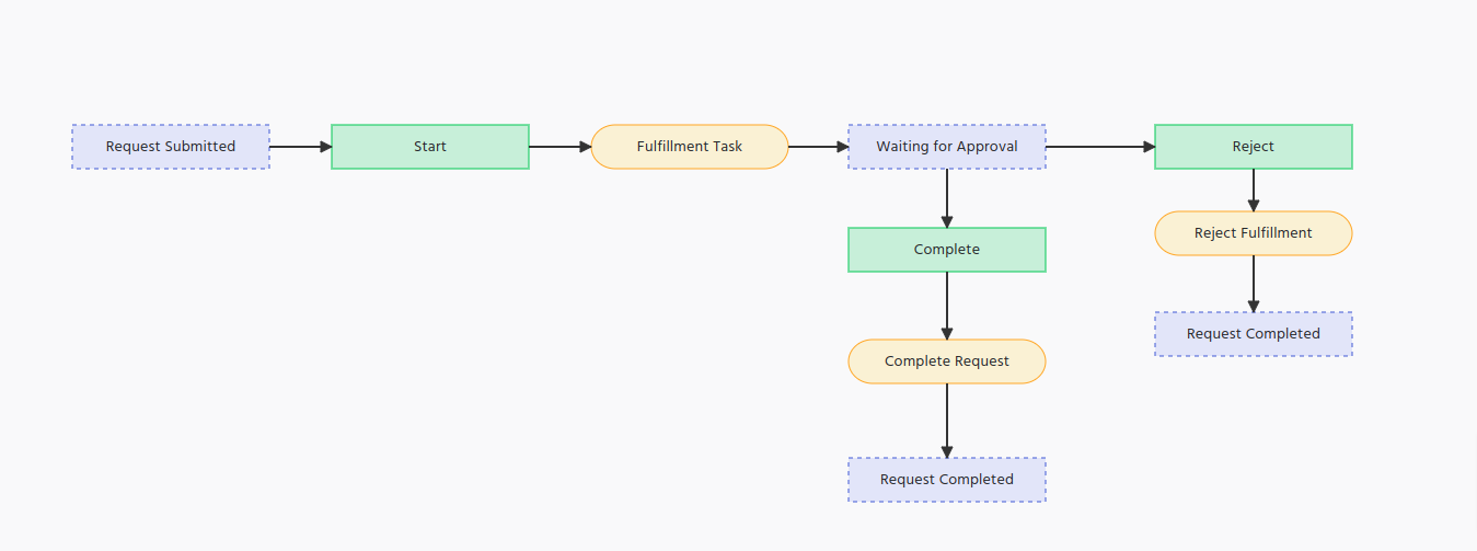 - The Fulfillment workflow starts with the State Node (Request Submitted)