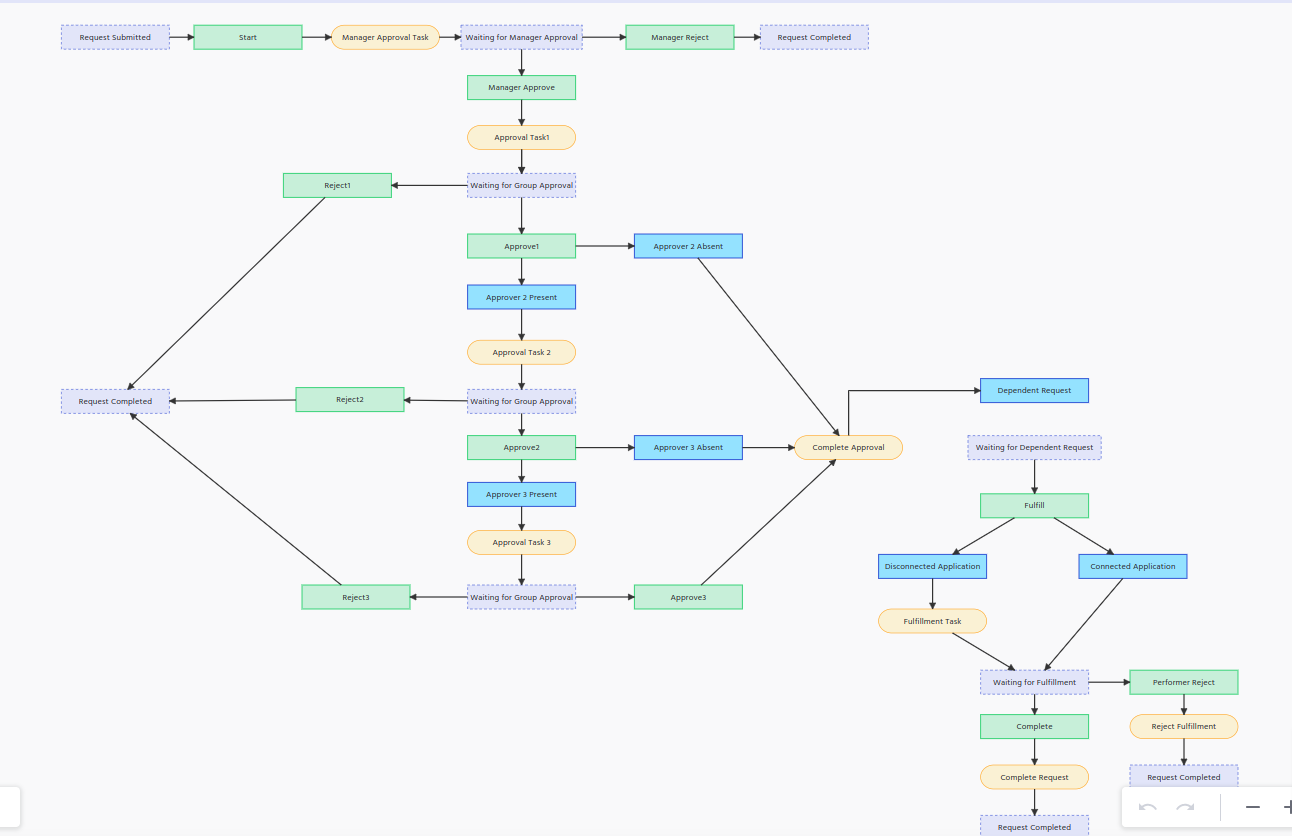 - Request completed state node to denote that the request has been completed once the fulfiller has approved the request.