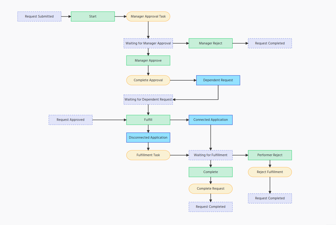 - Request completed state node to denote that the request has been completed once the fulfiller has approved the request.